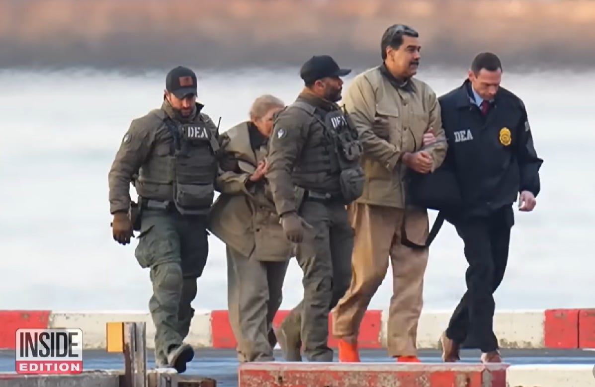 Former Venezuelan president Nicolás Maduro walks along a pier after arriving by helicopter in New York City, following his extraction and arrest in Caracas by U.S. armed forces. Photo taken from video broadcast by the U.S. news program Inside Edition